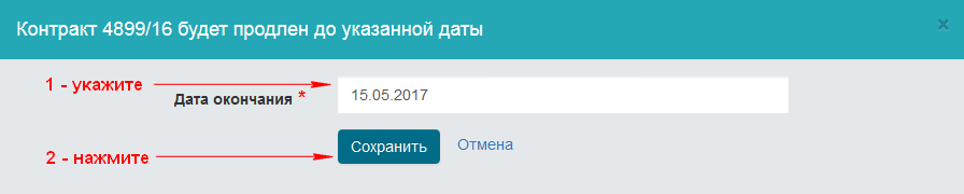 - Укажите новое время завершения контракта и нажмите Сохранить.