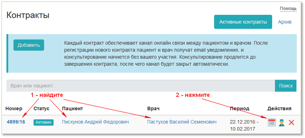 Продлить контракт нужно до окончания периода его действия в системе medsenger. Если контракт в системе уже завершился, для продолжения консультирования потребуется создать новый контракт.