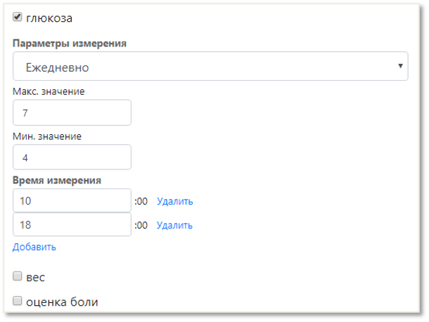 - Отметьте измерения, которые должен выполнять пациент.
