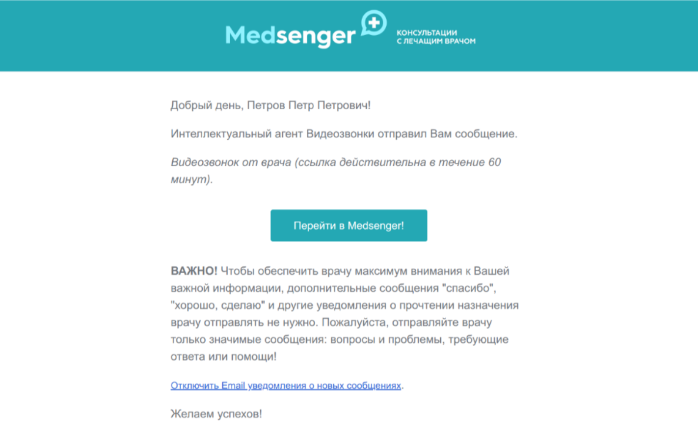 При создании видеозвонка пациент получит уведомление с приглашением присоединиться к видеозвонку с врачом.