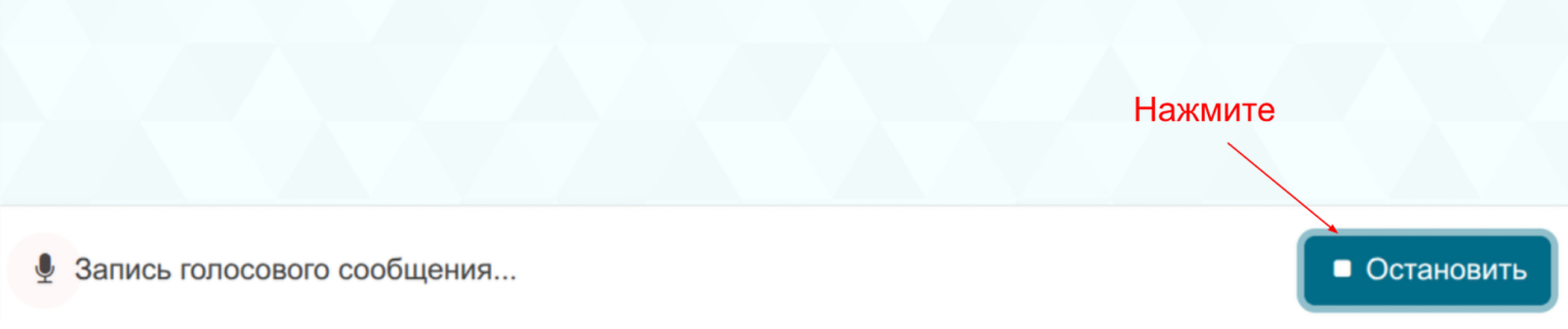 Произнесите ваше аудио сообщение и нажмите кнопку “Остановить”