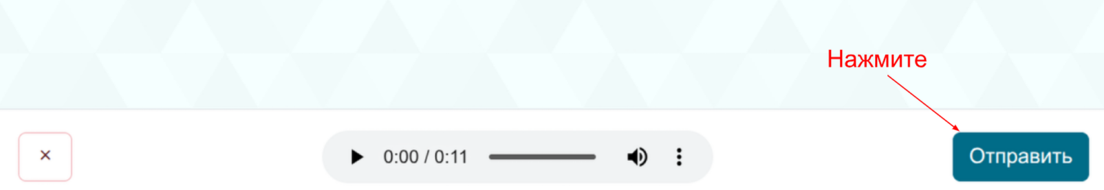 Далее нажмите кнопку “Отправить”. Ваше аудио сообщение появится в истории переписки.
