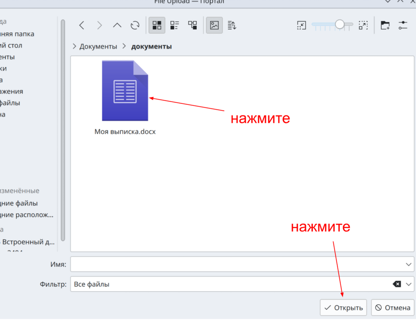 В программе проводнике требуется выбрать необходимый файл, нажать на него и на кнопку “открыть”.